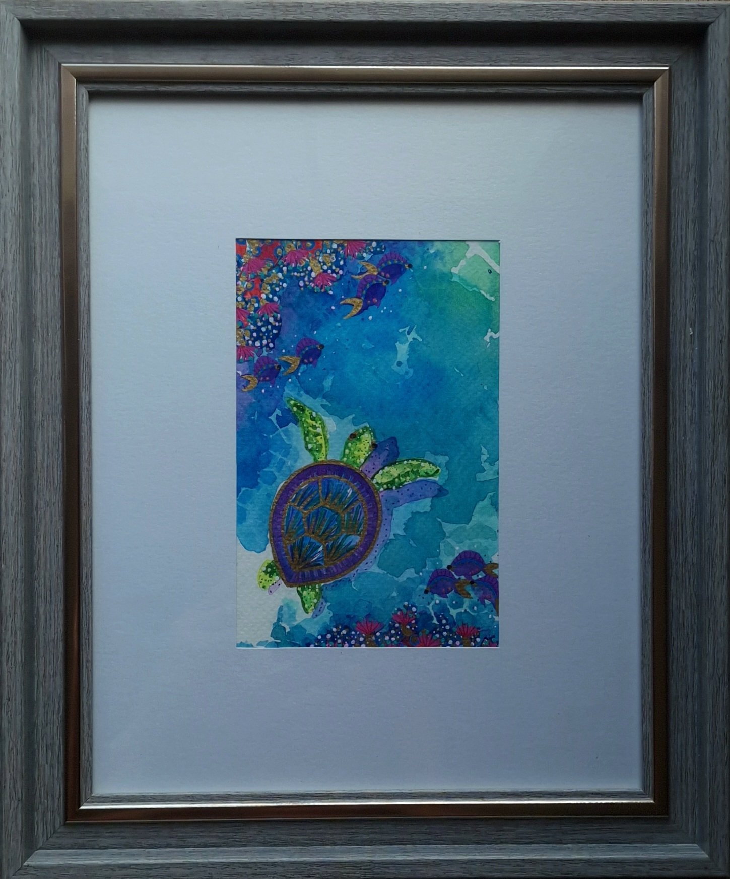 Watercolor with gel and gold, painted with oceanwater