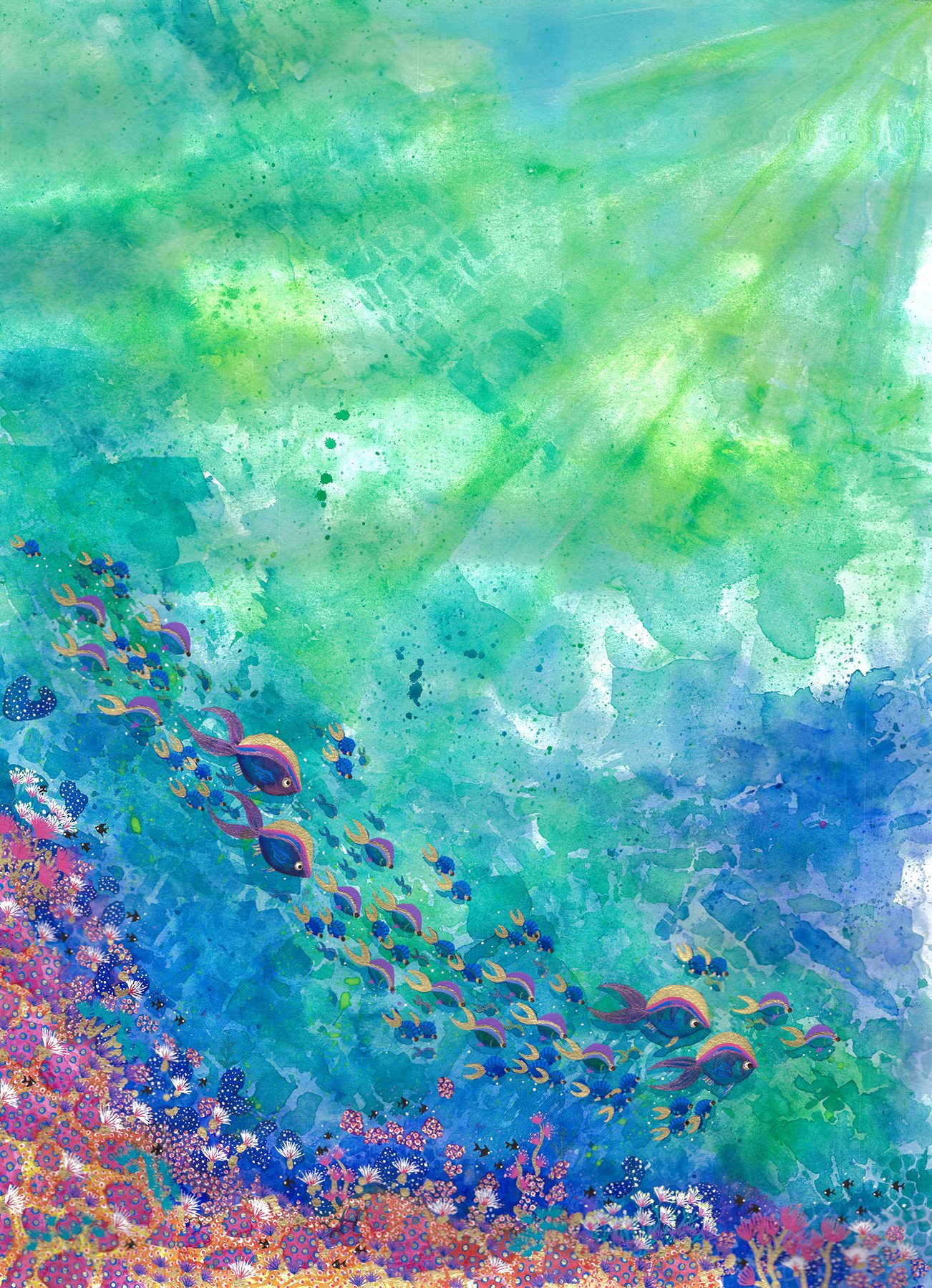 Watercolor with gel and gold