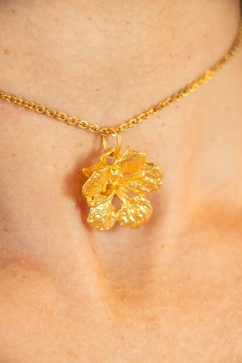 Ryon Dijkhoff, PENDANT FROM THE ARUBAN SYMBOLS COLLECTION – including stainless steel necklace, SILVER METAL WITH 24K GOLD PLATING, 2 x 2 CM, 2025
