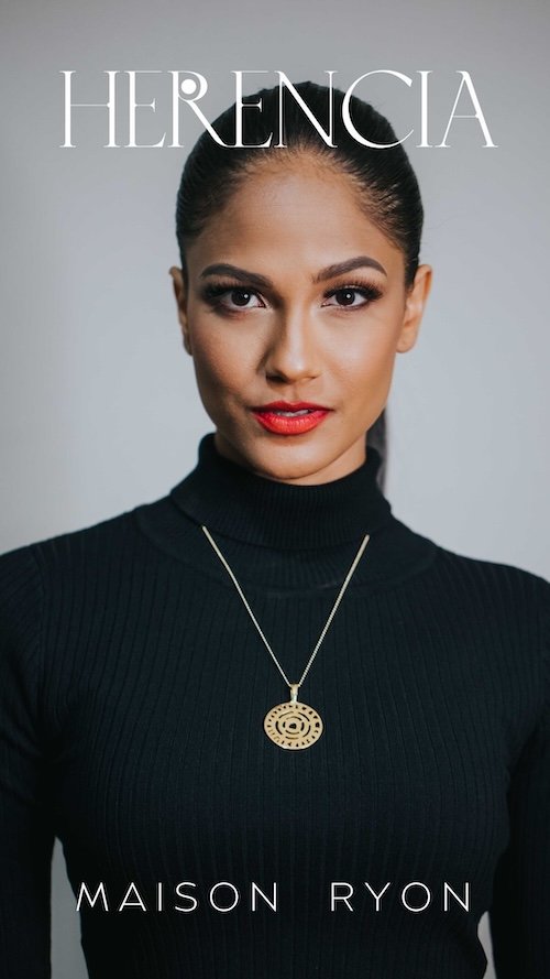 Ryon Dijkhoff, PENDANT INSPIRED BY ARUBA’S AMERINDIAN PICTOGRAPHS including stainless steel necklace, SILVER METAL WITH 24K GOLD PLATING, 3.5 X 3.5 CM, 2025